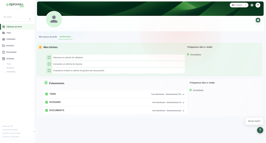 A first " My tasks " box allows you to target the tasks linked to your role in the organization: